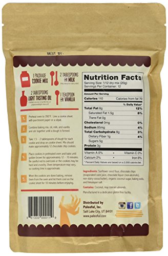 A chewy chocolate chip cookie mix that uses sunflower seed flour as its base for those that are trying to avoid nuts. If you aren't already familiar with baking with sunflower seed flour/butter, they almost taste like peanut butter when used in baking. So, these cookies have a slight peanut buttery taste, while still tasting like a delicious (and chewy) chocolate chip cookie. Just add oil and milk to the mix, bake, and you'll have yourself 12 scrumptious freshly baked cookies. You have to try them to believe just how good they really are :) Ingredients: Sunflower seed flour, chocolate chips (evaporated cane juice, chocolate liquor (non-alcoholic), non-dairy cocoa butter), organic coconut sugar, sea salt, and baking soda. *Nutrition facts are based on dry cookie mix. *Product is produced on equipment that handles nuts.