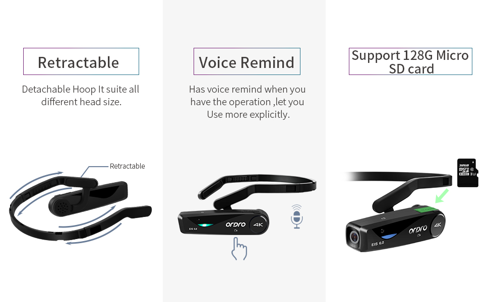 The ORDRO EP6Plus is a cutting-edge 4K head-mounted camera designed for hands-free, first-person vlogging. Featuring a SONY 1/2.8 inch sensor, 130° wide-angle lens, and advanced EIS 6.0 anti-shake technology, it delivers crystal-clear, stable footage. With WiFi connectivity and the OD Cam app, users can remotely control the camera, preview shots, and share instantly. The included 32GB microSD card and 1000mAh battery with pass-through charging ensure you stay powered and ready to capture every moment.