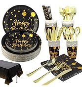 This 176-piece disposable dinnerware set includes gold-finished plates, cups, utensils, and coordinating black napkins with gold dots, designed for 25 guests. Crafted from BPA-free, food-grade plastic with a high-gloss PET protective film, it combines safety with upscale style. Ideal for a variety of celebrations, it offers a hassle-free, elegant dining experience that saves time on cleanup while impressing guests.