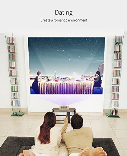 Specification: Projection technology: Ti DLP technology Light source: LED(RGB) LED lifetime: 10000hrs Brightness: 100 Lumens Resolution: 854*480 Screen ratio: 16:9 Projection distance: 0.5m-∞ Throw ratio: 1.5±0.02 OS: Android 4.4 Processor: Quad Cortex-A7 CPU: 1.2G System memory: 1GB Memory capacity: 4GB WIFI: Yes Blue Tooth: BlueTooth4.0 Video format: AVI, MP4, MOV, WMV, RM, RMVB Picture format: JPG, BMP, PNG Audio format: MP3, WMA, WAV Speaker built in: 2.0W Battery Li-battery: 3.7V, 2600mAh Features: Miracast mirroring:Support Android 4.2 and up grade systems(There are may some phone have incompatibility problem with this projector) AirPlay(DLNA): Support IOS 4.3 up version AirPlay(Mirroring): Support IOS 5.1.1 up version The Airplay have copy right problem with Netflix/HBO/Yotube. If have this problem please use other players or use DLNA not mirroring. When use WIFI, the projector and the WIFI Router do not far than 2 meters. Do not use too many WIFI in the same place, otherwise will delay or lag. Package Contents: 1x Mini Projector 1x Tray 1x Tripod 1x Carring Bag 1x HDMI Cable 1x Power Adapter (US) 1x Remote Controller 1x Cleaning Cloth 1x User's Manual