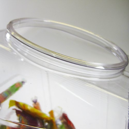 Our clear PVC bin container are referred to by our customers as fishbowls, candy jars, bowls, globes, jugs, tubs, and buckets. We manufacture many shapes such as rounds, squares, grip jars, hexagons, barrels, canisters, flattened globes, and novelty shapes. Clear Stackables PVC Storage Container Case is reusable, recyclable and Made of FDA approved clear material. Available with snap-on, tamper evident, or threaded neck finishes. "L" prefix denotes interlocking design. -Measuring 5.50W x 9.50L x 6.75H in.