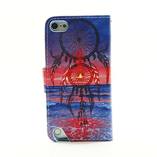 iPod Touch 5/6 Case,Luxury Elegant Printing Drawing Design Pattern PU Leather Magnetic Flip Wallet Case Credit Card Slot for Apple iPod Touch 5/6 - Sunset dreamcatcher Pattern