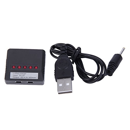 Product Features:Input voltage: DC 5.0VAs output voltage: 4.2V ± 5%Output Current: 350MA-410MAOvercharge protectionReverse polarity protectionOver-temperature automatic current regulation: thereApplicable models: General market small bald plug 3.7V lithium batteryMany models Hubsan Syma UDI FY JXD and other applicableSupport Model:Hubsan: H107, H107L, H107C, H107DWltoys: V977, V930, V202, V252, V939, V933, V955UDI: U816, U816A, U830JXD: 385,388,392Syma: X5, X5CFY: FY310, FY310BYIZHAN: X4JJRC: 1000A, 1000B, 5000DFD: F180Size: 42mm*38mm*13mmNet Weight: 24gPackage Weight: 25g