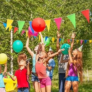 This 40M (131ft) multicolor bunting banner features 80 durable nylon flags, perfect for adding a vibrant touch to any indoor or outdoor event. With its waterproof design and reusable quality, it's the ideal decoration for birthdays, weddings, and more, ensuring your celebrations are both stylish and memorable.