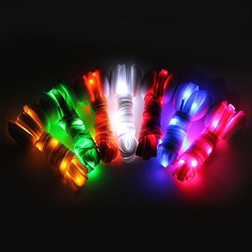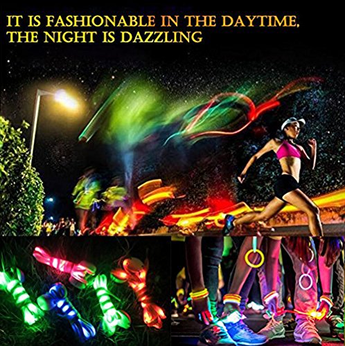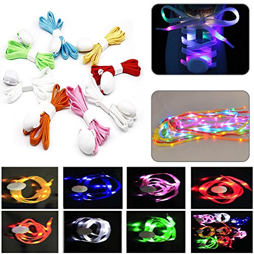 MAXCURY LED Lighting Shoelace is your best choice to do some night activities and dazzling cool fun in the Dark! Glowing neon rainbow colors are cool for night disco party, Cosplay and Hip-hop Dance and offer night safety for running, biking or cycling. The Reflective Shoelaces come in 7 different dazzling neon colors: Blue, Green, Pink, Red, White,Orange,Yellow. CR2032 button cells each string for longer service time: constant lighting for 30 hours; flash model for 60-80 hours. Perfect for any type of lace-up shoes such as tennis shoes, roller skates, roller blades, ice skates and soccer cleats! Specification: - Material: Nylon + LED strip - Length: 120cm/47" * 0.7cm Package Includes: 1 Pair(2 PC)*LED Reflective Shoelaces