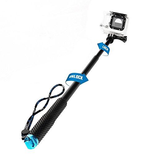 Adjustable Rubberized Aluminum Telescoping Monopod Handheld Extension Pole Monopod Selfie Stick for Gopro HD Hero1 Hero2 Hero3 Hero3+ Hero4 Camera with Adjustable Wriststrap