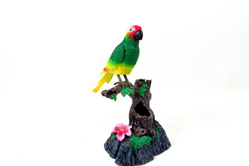 The Talking Parrot repeats whatever you say! Ever wanted a parrot as a pet? Well, here's your chance. Enjoy the back and forth banter with a toy parrot that repeats what you say twice. Get within effective recording range (3 feet) and the Sound Sensor Technology starts recording at the sound of your voice. Once the hidden mic starts recording, the base will light up. Aside from the repeated words, the animated parrot also spews out random words and phrases such as "hello", "I see you", and "I love you". It also whistles and tweeps without warning, and don't be surprised when it moves from side to side, opens its beak, and flaps its wings. Use the on/off switch and have a friendly conversation at a moment's notice. Sit the animated toy on a desktop and take advantage of the pen holder.