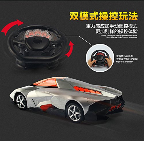 [product name]: luxury remote control car [remote control mode]: gravity sensor / manual mode [material]: ABS materials, electronic components [model ratio]: 1:12 [applicable age]: 3 years of age or older [color]: cool silver [product size]:34cm*14cm*9cm [packing size]: 56cm*15cm*19cm [whether with lamp]: before and after the simulation light [remote]: 30 meters [product configuration]: remote control car *1 remote control *1 car battery *1 charger *1