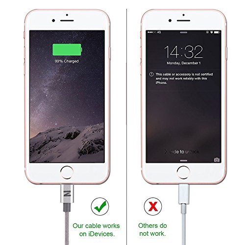 ZGEM CERTIFIED : The Lightning to USB Cable ensures 100% compatibility with all 8 Pin Lightning Apple devices to charge and transmit data stably quickly without error message.