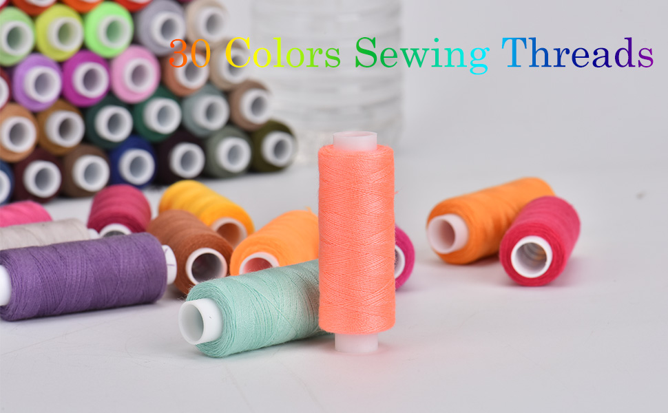 Queta 30 Colors Spools Polyester Sewing Thread Kit,Spools of Thread for Hand & Machine Sewing Sewing Thread Box with 2 Gourd-Shaped Needle Threaders and 16 Needles