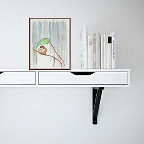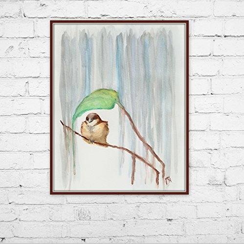 This lucky little bird found a natural umbrella from the rain! The original is hand painted by me, Jen Monson, with watercolors. I will sign the back before shipping. Your print will measure 8"x10". I do not include a frame. It is printed on semi gloss cardstock. When framed. you can easily get away with not using glass, and still have the art looking beautiful. Or, find a unique way to hang it!