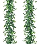 Martine Mall 3 Pack Artificial Eucalyptus Garland, 6Ft/pcs Faux Eucalyptus Vines Greenery Garland Fake Hanging Eucalyptus Leaves Plant Wedding Backdrop Arch Wall Table Party Festival Decor, Grey Green