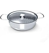 I have not yet used this for pressure cooking, but I wanted to get a review off quickly. I will amend the review if the function of this cooker requires it. It is definitely heavy stainless steel. The problem is the workmanship of the lid. It is difficult to get the lid onto the pot. I am afraid I will damage the seal, so I was extra careful when I tried to put it on. The reason for this review is the sticker on the pot. I have never had so much trouble removing a sticker! Rather than spend a few pennies more, the manufacturer decided that everyone who purchases this pressure cooker needs to spend 15 minutes of their time to get the sticker off. I don't like using goof off or goo gone on kitchen items. I tried to use very hot water. That got the paper off, but left the glue. I tried a delicate scrubbing sponge with the plastic scrubber on one side. That did nothing noticeable. I tried the regular scrubber-sponge. That managed to leave some tiny scuffs on the stainless steel, so it is no longer shiny; however, the vast majority of the glue remained. I then tried vinegar, which usually gets all kinds of marks and stains off of stainless steel. That was a waste of time and vinegar. Finally, I hit upon cooking oil. That, along with a bit of elbow grease, finally got the sticker residue off the pan. I deducted two stars for this. It is inexcusable for such a small thing that requires so much effort. The manufacturer should just buy better stickers that don't adhere like superglue on your fingers.