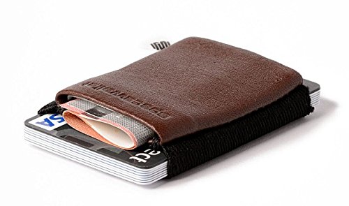 Small tiny practical wallet, 5,5cm x 7 cm, real leather - Space Wallet Black Chocolate Classic with additional coin pocket - elastic fabric - small purse, small portemonnaie, small pocket