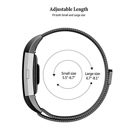 Description/Features: 1,Teorder Bands use of high-quality Stainless Steel Milanese Replacement Accessory Bracelet ,waterproof, sweatproof and breathable, durable,make you enjoy comfortable and sleeker in the movement. 2,Teorder replacement bands for Fitbit Charge 2/HR with magnet clasp of design ,Easy to attach and remove,automatically stick and lock to another end of the band, no buckle needed.Ensure your watch stay at place,be secure,no problem for sports. 3,Teorder wrist bands Adjustment Fitness Milanese Wristband wrist suitable size - Fits 5.5"-6.7" wrist ( Small ), 6.7"-8.1" wrist( Large ). 4,Teorder Replacement strap just for Fitbit Charge 2/HR,slightly wider band ,More convenient stable and durable .Teorder Wrist Bands Spec: 1.Material: Stainless Steel 2.Weights: 40g. 3.Dimensions: 22 x 1.8 x 0.2 cm(Adjustable size suitable for 6.7''-8.1'') 4.Magnetic Clasp: Strong Magnetic Package Contents: 1)Main unit :Teorder Replacement Bands for Fitbit Charge 2/HR *1pcsFeature Wrist band buckle applied unique design of Magnetic Clasp ,Adjustable bands, metal mesh band with Breathable,attractive ,more durable,easy to remove and replace Warm Tips: 1,Do not carry the replacement bands with Fitbit Charge into the water soaked, away from fire2,Replacement bands with adjustable can not be deliberately used to vigorously damage3,Please away from magnetic thing(Metal) when you used Replacement Bands