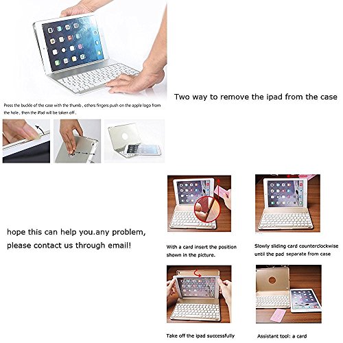iPad Pro 9.7 Backlit Keyboard Case Black ONLY FOR: Apple iPad Pro 9.7 NOT FOR: iPad Mini/ Mini 2 with Retina Display/ Mini 3/ iPad Mini 4/ iPad/ iPad 2/ iPad 3/ iPad 4/ iPad Air/ iPad Air 2/ iPad Pro 12.9 and any other tablets!!! Size Guide: 1) On the back of the tablet, near the bottom, you will find the Model No.. 2) Check the Model No. below to confirm if you viewed the right item. iPad Pro 9.7 inch Change your iPad Pro 9.7 into mini Macbook in seconds Built-in hinges allow the iPad to be tilted up to 130 degree to provide the most comfortable viewing position. It is comfortable for typing even when put it on lap. It is also great when travelling as it keeps the iPad secure. 7 colors Backlit keyboard: It has 7 backlighting colors and 3 different brightness modes. You can change the backlight color to match your everyday mood. It brings you a lot of fun. Smart Keyboard: The keyboard automatically goes into a standby sleep mode when it is idle. Press any key to awake it. Turn on/off keyboard once open/close the case. Pair bluetooth automatically Just press Conbination keys "Fn" + "C", and open your ipad pro 9.7 Bluetooth signal, Click the bluetooth signal named"Bluetooth 3.0 Keyboard", Bluetooth will be connected. Energy saving: Built-in Rechargeable lithium battery lasts for approximately 100 hours per full charge. How to remove iPad Pro 9.7 off the case? Firstly please break out the shell with your hands from the top corners. Then slide your little finger in protective shell to pop the ipad out. iPad will be removed easily. PACKAGE: Wireless Bluetooth Keyboard *1 Micro-USB Cable *1 User Guide *1