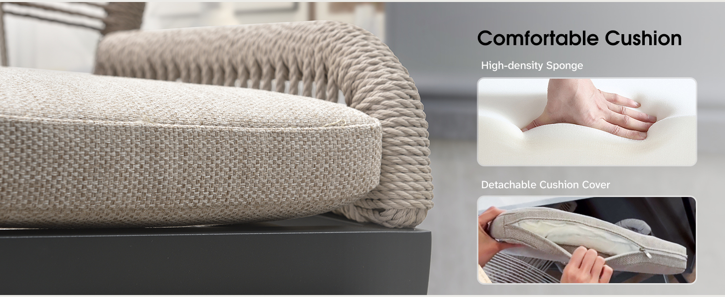 The PURPLE LEAF Counter Height Bar Stools Set of 4 combines style and comfort with a hand-woven geometric backrest and durable aluminum frame. Designed for all-weather use, these stools feature a comfortable cushion and are perfect for various outdoor settings. Easy to assemble and maintain, they support up to 330 pounds, making them a practical choice for any gathering.