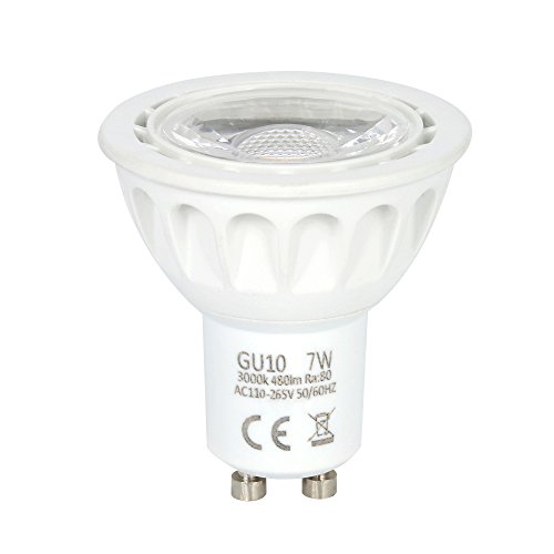 Save power costs: With a power of 3.5W, this LED replaces 50W halogen lamp, saving you over 90% electricity costs. Easy assembly: To replace the conventional halogen lamp, this LED lamp is screwed directly into the GU10 socket. Rare replacement: This LED lamp is replaced more frequently and reduces the maintenance costs. Instant full light: The start time is less than 0.5 s, no need to wait for the warm-up. Applications: Energy efficiency class A + Shock and vibration proof thanks to LED technology Luminous flux: 600 lumens Color temperature: 3000 K Light color: Warm white Power consumption: 7 W Average working life: 10000 hours Socket: GU10 No UV- and IR-near light rays Knife: 25 mm Coloration: Warm white light provides well being and relaxation. The warm color provides for inner peace and security.