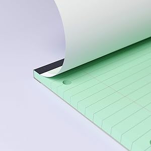 - The feint ruled lines and margin fade subtly into the background as you write making words appear more prominent on the page.