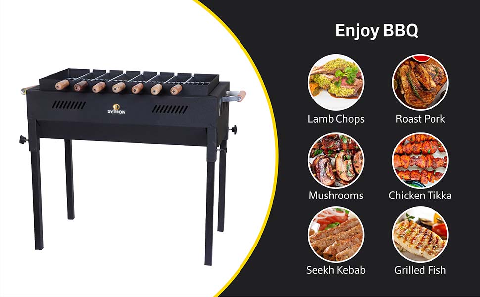 The Dymon Backyard Charcoal Grill Barbeque in Stellar Black combines durable cast iron construction with a powder-coated finish for long-lasting use. Featuring 7 skewers, a charcoal tray, and an offset smoker attachment, it offers versatile cooking options from slow-smoked ribs to quick kebabs. Lightweight and free-standing with no assembly required, it’s designed for hassle-free, professional-grade outdoor grilling.