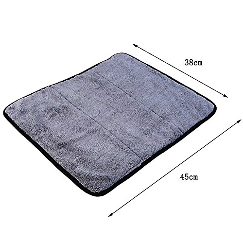 - Quick drying with huge absorbency: microfibres can absorb up to 7 times their own weight in water. It’s 45 x 38 cm dimensions offer great potential in this respect. Makes drying your car a thoroughly enjoyable experience.