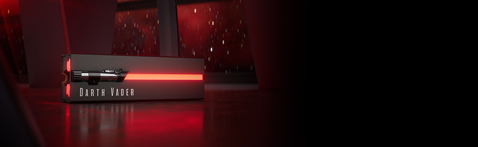 The Seagate Lightsaber Collection Special Edition FireCuda SSD is a 1TB M.2 PCIe Gen4 ×4 NVMe 1.4 solid state drive delivering up to 7300MB/s read speeds. Featuring a unique interchangeable design with three iconic Star Wars lightsaber faceplates, customizable RGB lighting, and a custom EKWB heatsink to reduce thermal throttling, it combines high performance with collectible style. Includes a 5-year warranty and 3-year data recovery service.