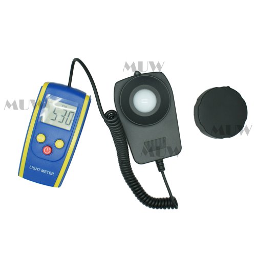 Features Auto revise parameters and measurement User selectable Lux/Fc MAX/MIN record Low battery indication Auto power off Specifications light lux meter from 0.1 Lux to 50,000 Lux and 0.01FC to 5,000FC Special function: Auto power off with disable feature; Data hold; MAX MIN; Back light Accuracy: ±(3% +30 digits) to reference Sample rate : 1 time/sec Auto power off: about 15 minutes idle Operating environment : 0~+50°C(32~+122°F), 0~85%RH Storage environment: -20~+60°C(-4~+140°F), 0~85%RH Power Supply : DC1.5V (AAA) x 2pcs Dimension : 121(L) x 60(W) x 30(H)mm Weight : about 180g