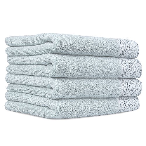 The material: The premium towel is made of natural material, eco-friendly , free from harmful chemicals, to protect you and your family. it is a good gift to your family. Woven with 100% ring spun cotton.Especially,it is super soft and highly absorbent.How comfortable you will be. It may become your favorite soon. Set Contains: 4 super soft hand towels 34x70 Square centimeter. Each hand towel weights 170g Disinfection tips: For oily skin, you can soak the towel with salt water then rinse with water. Changing your towels regularly is able to avoid of germs. It's best to you to have a towel for three months .