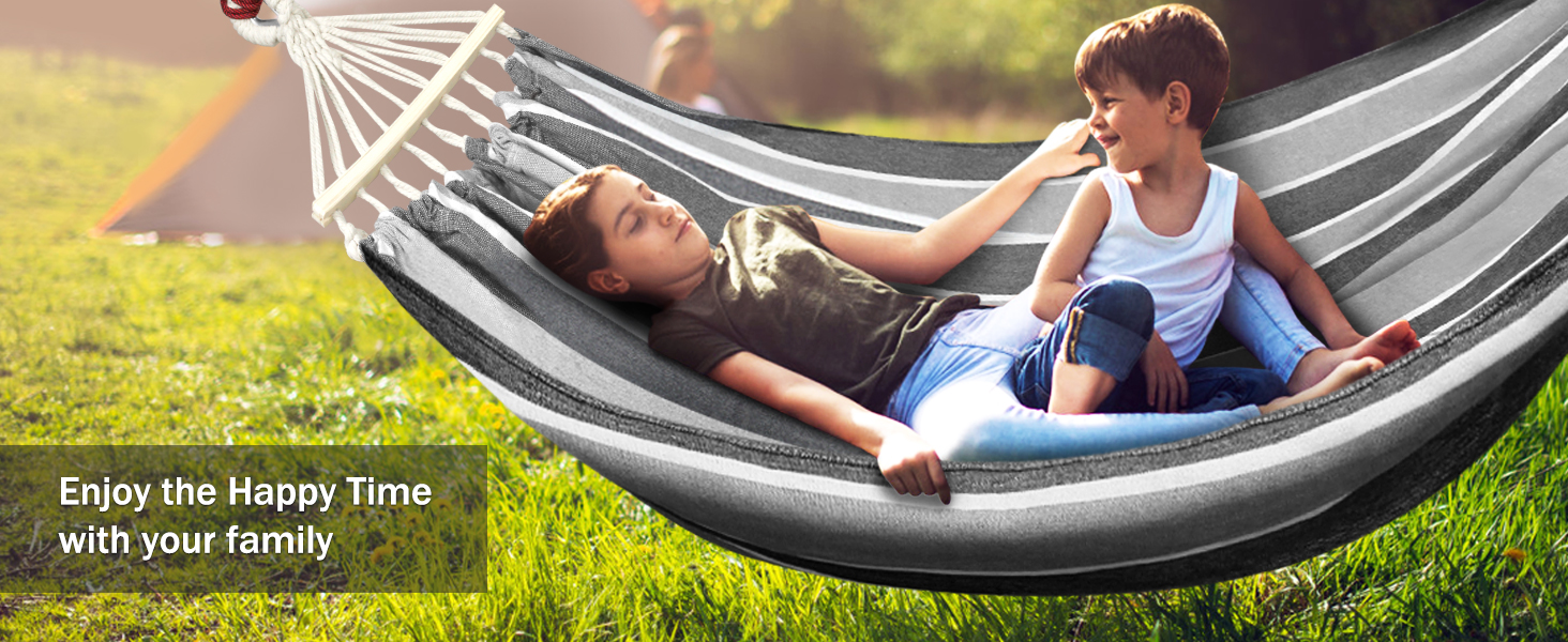 I love this hammock. It was easy to hang up and is thick enough to hold my husband who weighs over 300 lbs. Adding an outdoor pillow made it my favorite relaxation/reading spot while my children play in the backyard. As a mother of seven I take every opportunity I can to relax, and have found this hammock to be the best place for me and my seven month old son to swing. He loves the motion, which allows him to fall asleep easily and stay asleep while I read. It is well made, comfortable, and worth the money.