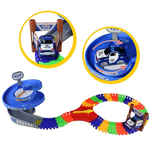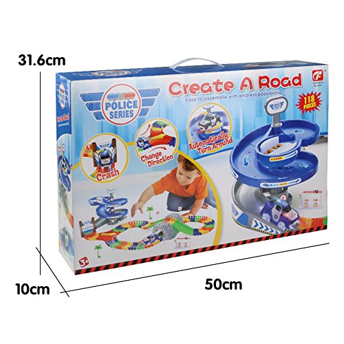 Product Features: ◆Racing Car Track Set, lovely well made item and comes with one car and automatically goes around the track. ◆The racing car track is easy to assemble and the car is ferocious. ◆Comes up with your own designs to create various tracks. It helps develop children hands-on and innovative ability. ◆Portable and Easy-carrying design, children can play this racing car track toy indoor or outdoor. ◆The toy is made of non-toxic plastic material and complies with EU relative regulations. Track Length: 210cm Package Size: 51cm x 31.5cm x 9.5cm Quality Guarantee: Please feel free to contact us if you have any questions, we will try our best to resolve it. Your satisfaction is our best expectation. Safety Warning: Small parts may causing CHOKING HAZARD, not for kids age under 3 years old.