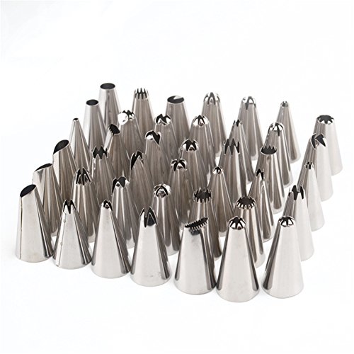 Product effect: 42 various cake piping tips Product parameters: (1). Material: 430 stainless steel (European standard) + PP converter + PP storage box (2). Size: about 30cm x 20cm x 5cm/11.81 x 7.87 x 1.97in (see the picture for the size of single) (3). Color: Silver How to use: matching with piping bag, pipping tools Note: clean timely after use, and keep in a clean and dry place Packing list: 1 x 42pcs cake pipping tips set We are committing to provide the hightest standard product quality and service to all our customers. If you have any questions about the product before or after purchase, please feel free to contact us.