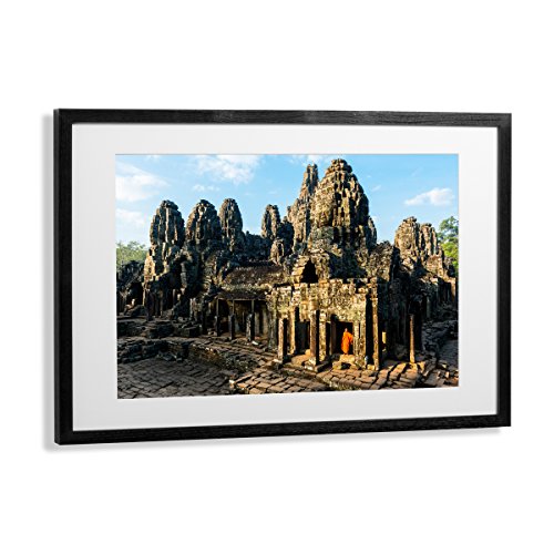 Eyecandy Art Group Bayon Temple – Burma-Special Edition Framed Fine Art Giclee Mounted Print 30x20. Individually Numbered by Award Winning Photographer, Wood Ash Black
