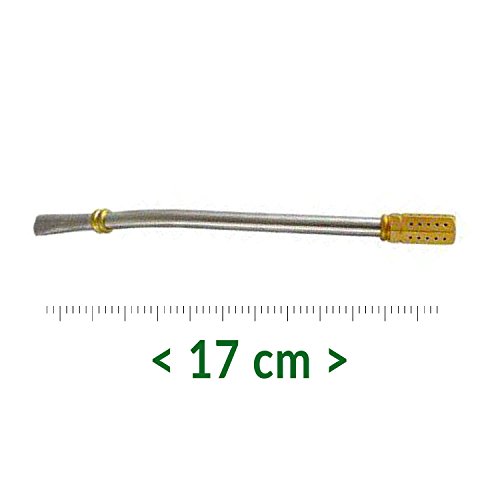 Quito is a very carefully Stainless Steel bombilla INOX, slightly arched, Length 17 cm, decorated with a gold cool ring. Abgeschra Ubtes gold-plated filter element ensures easy cleaning. A medium length stainless steel bombilla For Mate Tea, the durability and resistance to mechanical damage and high temperature. 't Terrible to boiling water. High quality stainless steel; Stainless steel will surprise even the most durable properties. It will not rust, which ensure its durability. Stops your metallic, silver shine and glows. It is very easy, clean. A small amount of cleaner and little water. In addition to the bombilla there's a golden cooling ring, protects against hot water, easy cleaning. Simple design that will add elegance and functionality. Therefore, it is long on 17 cm, fits into any Mate Mug. Its screen is even able to very fine chopped Dair to filters. In addition to mate tea, it can be bold for a wide variety of other beverages. It is his job with tea, infusions, herbs, and other delicious drinks. We recommend it the more experienced those who just love to stretch out on the beach Mate Tea as well as those who are currently beginning with the mate tea your adventure.