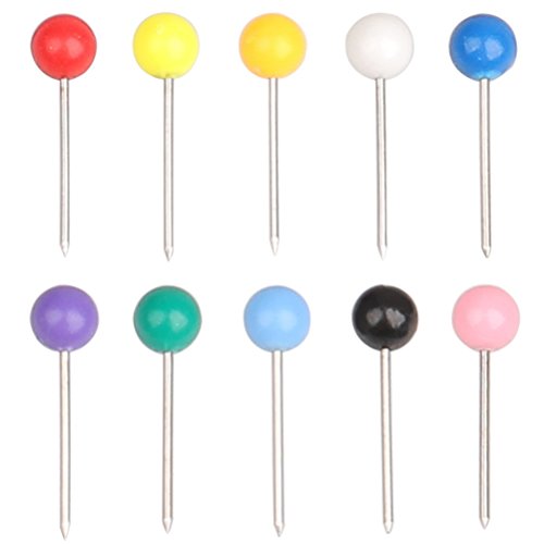 Feature:1. 10 different color map push pins, make things around colorful.2. Give more choices to color your life at home, office, school etc. 3. Packed in clear box to keep your desktop or your desk drawer organized.4. Durable multi-purpose and can be utilized for a long time.Specification:Quantity: 500 pieces map push pinsBall diameter: 1/8 inch, 4mmTotal length: 3/5 inch, 15mmColors: Pink, black, green, white, light blue, orange, purple, blue, red, yellow (10 different colors, each color 50 pcs)Package include:500 x Map Tacks Push Pins with Clear Box