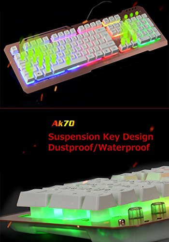 Professional backlit keyboard competitive games AK70,white color box packaging, luminous keyboard, quality assurance. Adopt the most advanced backlight design, fantasy and not dazzling, let your game world is full of color, but also the symbol of the keyboard class. Keyboard on optimization of structural design, reduce hand fatigue.Ergonomic design of the keyboard, even if used for a long time, also won't feel tired, is your hands thoroughly passion release. 19 key no rush function, the key conflict with blow not can make the game more smoothly, say goodbye to delay case, help you on the road to the king.High strength material keyboard support,Contraction sensitive,excellent combat ability, fear all kinds of pressure. Advanced, nine dazzle light waterproof system, make the keyboard enough to deal with various floods encountered in daily life. Games are Socoda special USB interface, nickel plated USB interface, easy to plug, responsive, signal stability, wire using violent resistance material, sturdy and durable.