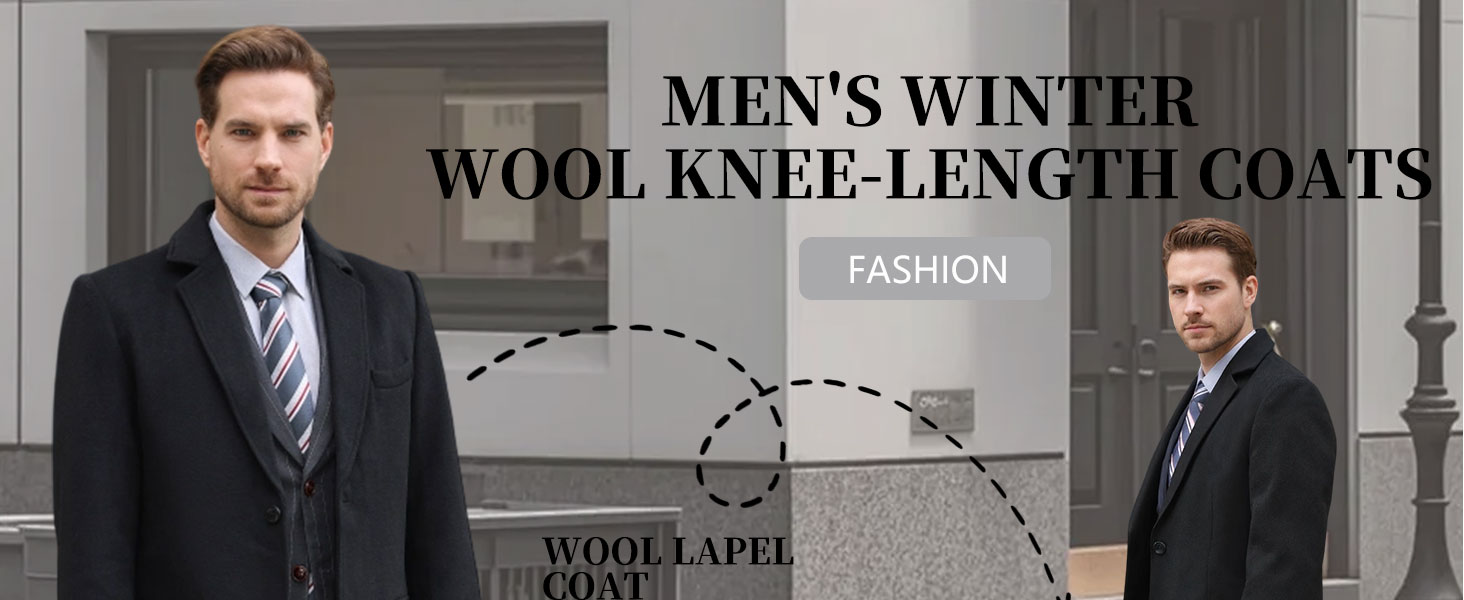 YOUTHUP Mens Winter Coat Slim Fit Wool Overcoat Knee-Length Elegant Trench Coat Business Peacoat