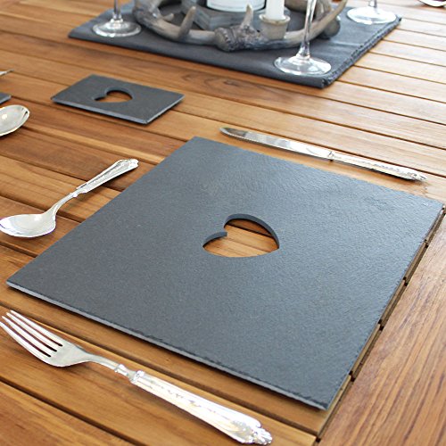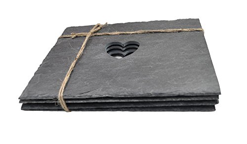 Roman at Home presents these Heart Slate Placemats, which incorporate a stylish cut-out of a heart in the centre of the slate. As well as these placemats bringing a stylish design to your dining table they also offer practicality with the slate material being easily wiped clean. The Heart Placemats are beautifully presented with a shabby chic style rope wrapped around the four placemats. To make a real style statement with these placemats, you can add the matching coasters to give your dining table the finished look. Our Heart Slate Placemats are part of our slate home accessories collection, which make a perfect addition to your home or a stunning gift for a loved one. These placemats are included in our Best of British range, as they have been designed and created by a family run business in the Cotswolds.
