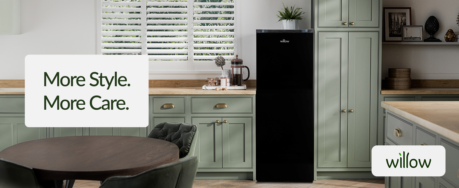 The Willow WTF55B is a sleek, freestanding tall freezer offering 177L of organized storage with 6 compartments. Featuring an easy-to-use external adjustable thermostat and a reversible door, it fits seamlessly into any kitchen layout. Its quiet 41dBA operation and mark-proof finish make it a low-maintenance, stylish solution for modern households, backed by a 2-year warranty.