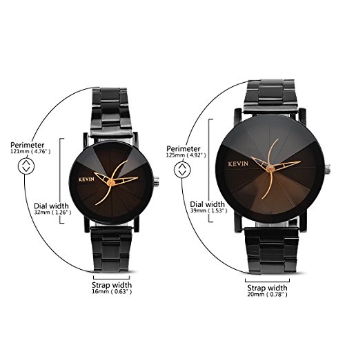 Product Description: Material: 1.Movement: Quartz Movement 2. Watch Case: Alloy Case 3.Watch Band: Alloy Bracelet Watch Band 4.Dial Window Material Type: Glass Mirror Color: Black Size: Women Watch:Perimeter:121mm/4.76inch(adjustable),Case Diameter:32mm/1.26inch,Bracelet Width:16mm/0.63inch Men Watch:Perimeter125mm/4.92inch(Adjustable),Case Diameter:39mm/1.54inch ,Bracelet Width:20mm/0.79inch Net Weight: Women Watch:53g; Men Watch:70g Package Weight: Women Watch:73g Men Watch:90g Packing: In OPP Bag Package Include: 2 Pieces Watches