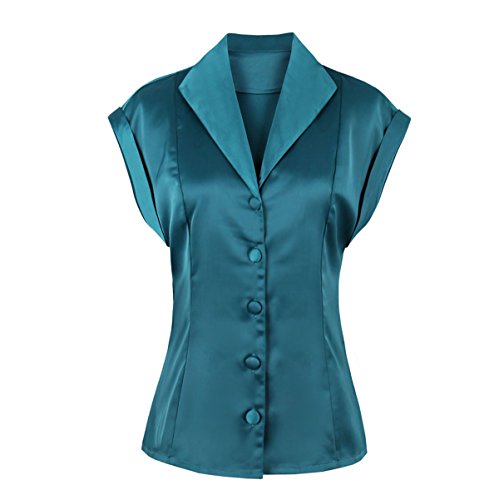 Size Chart:S---Bust: 34.3"---Waist: 28.3"---Shirt Length: 22.0"M---Bust: 36.2"---Waist: 30.3"---Shirt Length: 22.0"L---Bust: 38.2"---Waist: 32.3"---Shirt Length: 22.0"XL---Bust: 40.2"---Waist: 34.3"---Shirt Length: 22.0"2XL---Bust: 42.1"---Waist: 36.2"---Shirt Length: 22.0"Brand Name: FunrayWash care: hand wash cold or dry clean.Occasions: bussiness, office, meeting, church, school, daily.Features: front button clsure, cap sleeves, spread collar, semi loose fitting.Funray Satisfaction GuranteeThis is your must-have button down shirt, it looks elegant and high-classic and fetures a Special& Newest style, you'd look decent and respectful in almost all the occasions with this shirt.If you really are fond of the style, please feel free to get one because if you don't like it in the end, you could always contact us and we will provide you a satisfactory solution in 24 hours!
