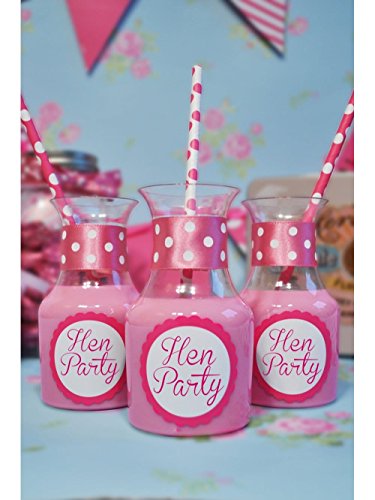 Make sure everyone knows you're on a hen party with these 6 Vintage Mini Clear Plastic Milk Bottles. Whatever you drink, make sure it's out of this receptacle!These cute glasses are made out of see-through pink plastic and hold 220ml. They are shaped liked old-fashioned milk bottles and have 'Hen Party' written in pink letters. Why not add these Spotty Straws to complete the retro look? Hen Party Superstore offer a range of delivery options, including Next Day and Saturday delivery so that you can get your perfect accessories even at short notice.