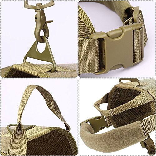 MOLLE System PALS webbing sewn on both sides for MOLLE attachments enables your dog to carry his/her own and even your necessities while hiking, travel or just afternoon dog park visit. Comfortable Wear A breathable mesh is sewn under the vest and the the collar is softly padded for comfortable wear. Velcro Panel The Velcro panel above the harness is as long as the vest back length, and is 4"/10cm in width, you can attach any morale patches you like to make your dog the coolest one. SIZE Chart in INCHES S - Back Length: 12.8" - Girth: 15" to 20" M - Back Length: 16" - Girth: 18" to 29" L - Back Length: 19" - Girth: 20" to 34" XL - Back Length: 21" - Girth: 22" to 38" Package included: 1 x Dog Harness Note: 1,Please allow little color difference due to different camera or different screen display. 2,There is maybe 0.5-2 inch diffenence due to different measurement. Size is for reference only, there may be a little difference with what you get.