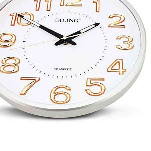 Cunclock The Living Room Wall Clock Clock Mute Round The Clock Luminous Quartz Clock 33Cm,Champagne Silver