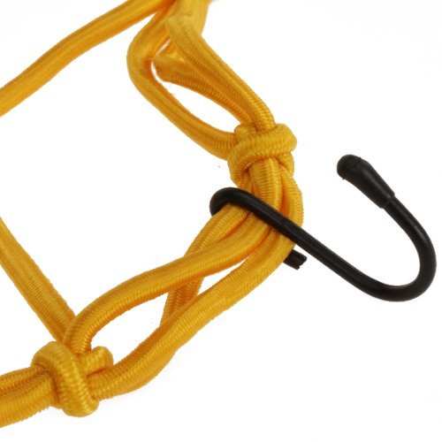 Small and lightweight cargo net can be used anytime a package needs to be secured.This Bungee Motorcycle Helmet Cargo Net have Hooks that are plastic coated with rubber tips to protect your bike and prevent slipping and scratching.This Bungee Motorcycle Helmet Cargo Net is Perfect for transporting a helmet, jacket, or small packagesFeatures:Designed to secure and cover helmets and other loadsMade from high quality bungee materialStretches to provide ample room while remaining tough enough to keep loads securedSimple to use, with 6 attachment plastic coated hooks that wont mar the finishEither mount to grab rails, hooks, or fasten it to itselfAlso great for camping, fishing, biking or just handy to keep one in your car trunk or saddlebagsSize:Flat Measures: Approx. 30 x 30cm(unstretched)Stretch Measures: Approx. 63.5 x 61cmMaterial: BungeePackage Including1 pc
