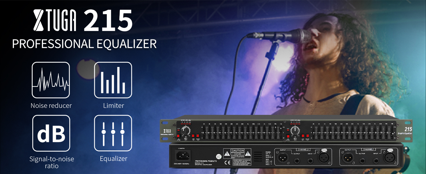 The XTUGAAudio Equalizer is a professional 15-band dual-channel stereo graphic equalizer designed for precise audio customization. Featuring ±12dB gain per band, a low-cut switch to reduce unwanted low-frequency noise, and versatile XLR and 1/4 TRS connectivity, it fits standard rack mounts for easy integration into any home or professional audio setup.