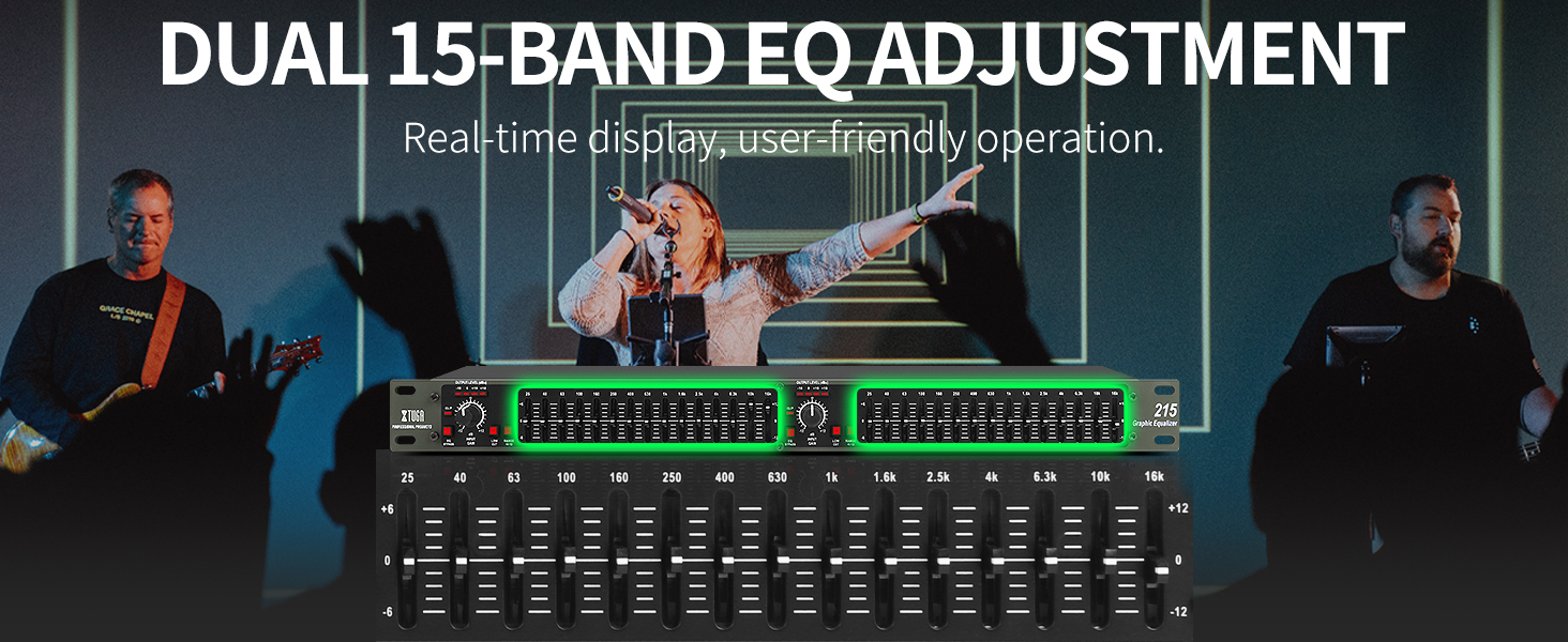 I recently added the XTUGA Audio Equalizer 15 Band Dual Channel to my guitar processing rack, to help shape my guitar tone. The precision of the 15 bands allows for adjustments, ensuring my sound is exactly how I want it. The dual-channel feature is perfect for my setup, allowing me to tweak each channel independently, which is fantastic for live performances where I use two amps. The build quality is good and the unit fits into my rack easily. If you're into crafting your guitar tone with EQ I recommend this to elevate your sound.