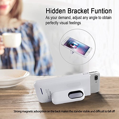 Advanced Features: 2 in 1 Magnetic Design The silky smooth to the touch battery case is made of two magnetic pieces. The magnetic rechargeable case can be configured to work as a phone stander, or with magnetic car mount, or just stick it to your fridge. Extra 100% Battery Life 3000mAh high capacity extended power pack can provide your iPhone 8 once extra battery life, always online and never worry about power off. Charging&Sync through This iPhone 7 rechargeable battery case allows to charge and sync your iPhone 7 to iTunes without removing it. With your iPhone in the charging case when you sync, it will charge your battery case first. If you press the power button once, it will charge your iPhone and have access to data transmission.4 Power LED Indicators4-level battery status indicate the remaining capacity of your charging case. Safety Smart key switch, extend the battery life, more safety. Integrated circuit design can avoid short circuit, overcharge or even extreme operating errors. Specifications: Battery type: Lithium-polymer Capacity: 3000 mAh Battery Input: 5V/1A (Over-current protection) Battery Output: 5V/1A (Over-voltage protection) Product Weight: 3.7 ozDimensions: 5.5*2.8*0.6 inchPackage Contents: 1 x3000mAh iPhone Battery Case 1 x User Manual Warranty: 100% brand new with 1 year warranty. If there is any quality problem on our battery case in 12 months, let us know and you will be offered a full refund or replacement.