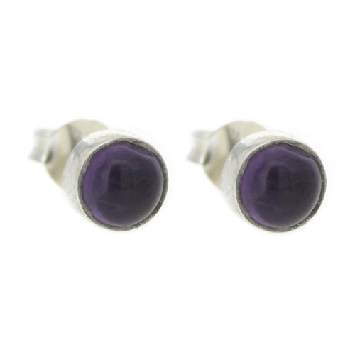 Nova Silver Bemine Sterling Silver Amethyst Cabachon Round Stud Earrings