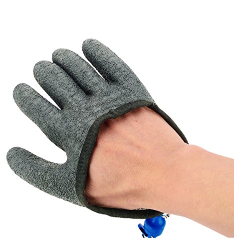 New Slip Resistant Latex Fish Catching Gloves with Magnet Release for Right HandFeatures:Material:dyneema, latexGrab fish& hold it in hand:slip resistance surface design, rough surface prevent you from the hurt of shark fin fish scalesPortable & lightwaight:you can hang it on your bag or pants with the hookEasy to operate:magnetic release hook design, you can take off the glove from your bag with just one handSize information:Medium: total length: 19cm/ 7.48in, middle finger length:12cm/ 4.72inLarge: total length: 20cm/ 7.87in, middle finger length:13cm/ 5.12inPackage includes:one right hand glove with magnet release