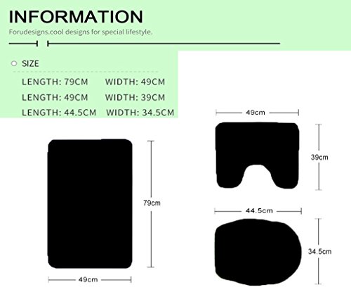 3 pieces bathroom mat set is a perfect device used on the floor of a bathroom, on the toilet seat cover to provide a warm non-slip surface, and to absorb small amounts of water, Creates a pretty and modern addition for your home decor. Soft to touch, good flexibility, easy to clean and non-slip, mouldproof, a perfect necessary for your home. Technology: thermal transferMaterial: :Flannel+ Polyvinyl chloride(PVC) mesh bottomSize: 79 x 49cm/49 x 39cm/44.5 x 34.5cmAdvantage:(1) Flannel fabric, very soft feeling and comfortable, PVC mesh bottom, non-toxic, odorless, not moldy.(2) Easy absorb water and dust good slip resistance;(3) Easy to clean, can be directly washed by washing machine or hands, not shed and fade, the back avoid to direct sunlight.(4) High density super soft fabrics, comfortable, environmental protection, good ventilation.Package1 x Bath mat1 x pedestal mat1 x Toilet lid coverWashing:Hand wash: Soak in water 10 minutes, then add the detergent or laundry detergent, scrub gently with a brush.Machine wash: Soak in water10 mins, then folded twice into the washing machine, don't with other clothes to wash.